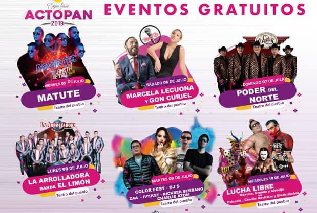 Este es el Programa de la Feria Actopan 2019, el cual fue obtenido desde la página oficial en Facebook del gobierno de Actopan, Puedes consultar en cada foto la URL oficial para validar la información.
