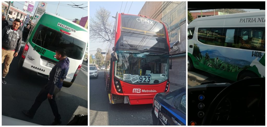 Aproximadamente a las 8 AM, 4 unidades del servicio público de Actopan se bajaron agrediendo al operador de la unidad 923. Se molestaron por que nosotros tenemos carril confinado para circular, el operador le pide despejar para poder pasar, acto seguido, los conductores agredieron la unidad y se dan a la fuga por indios verdes hacia pachuca.