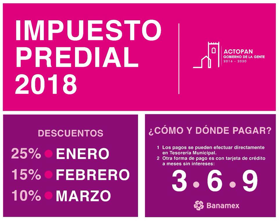 También existirá un un descuento del 5% adicional a quienes comprueben con factura original a nombre del propietario el uso de alguna fuente de energía renovable que se utilice en el interior del predio, todo de acuerdo a lo establecido en el artículo 16 de la Ley de Hacienda para los Municipios del Estado de Hidalgo, informo el alcalde de Actopan, Héctor Cruz Olguín.