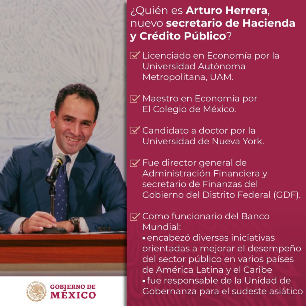El hidalguense y Actopense Arturo Herrera Gutiérrez fue elegido por el presidente Andrés Manuel López Obrador como el nuevo titular de la Secretaría de Hacienda, en sustitución de Carlos Urzúa, quien renunció la mañana de este martes al cargo a través de una carta dirigida al mandatario mexicano, en la que alegó que huboc “discrepancias en materia económica” y criticó que se tomaron decisiones de política pública en el Ejecutivo federal “sin el suficiente sustento”.
