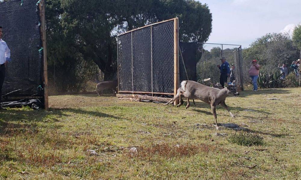 Autoridades de los tres órdenes de gobierno liberaron 20 venados cola blanca para restaurar la vida silvestre en el corredor biológico del puma en Actopan