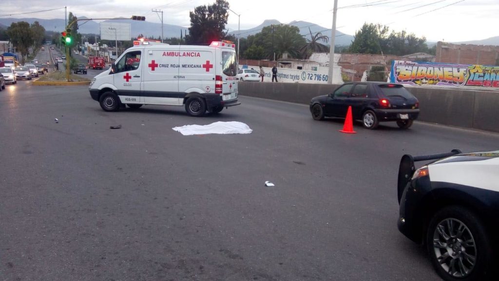 La mañana de este martes 02 de Octubre, un hombre de aproximadamente 60 años de edad, murió al ser atropellado por un automovilista que se dio a la fuga en Actopan, a la altura del paradero de la cima, a pocos metros del puente peatonal, cuando la víctima pretendía cruzar la carretera.