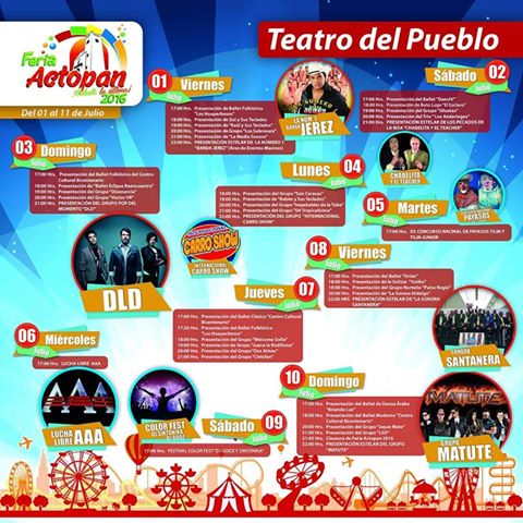 Banda Jeréz y Banda el Recodo son las bandas que inician y concluye la feria, el programa de las actividades lo iremos ampliando con más detalles, por el momento, te dejamos este programa, no olvides visitar nuestra página para ver las últimas actualizaciones: