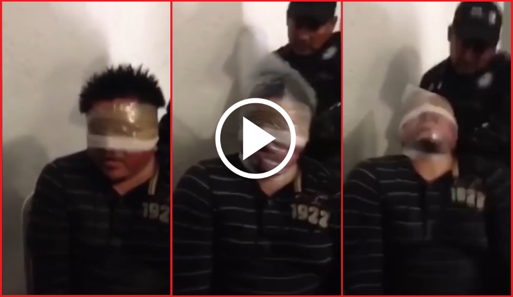 En las imágenes publicadas recientemente de un video en Youtube, se ve a uno de los detenidos por el caso ayotzinapa sentado, aparentemente maniatado, con los ojos vendados. Detrás hay una persona en uniforme, presuntamente un policía ministerial de la fiscalía federal, con una bolsa en las manos. Le interrogan. Un minuto más tarde, la persona en uniforme le coloca la bolsa en la cabeza…