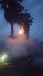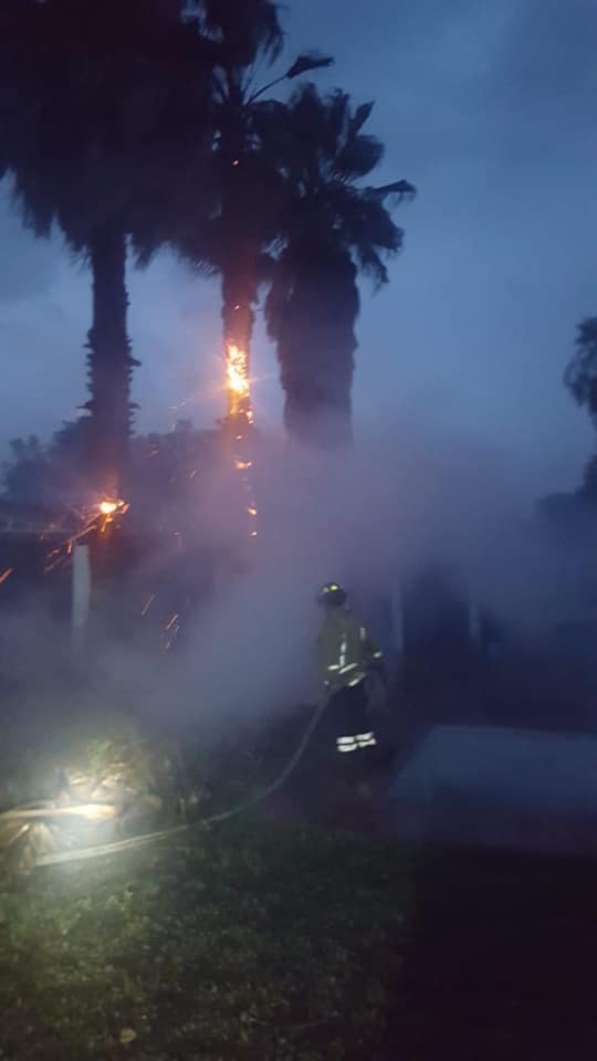 Esta noche, a las 19:50 hrs. aproximadamente y tras recibir reporte ciudadano, elementos de Protección Civil Bomberos de Tula, avanzan a la comunidad de el Llano 1a. Sección por un árbol en llamas que minutos antes había sido impactado por un rayo.