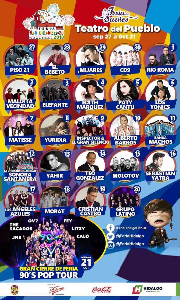 Home / Eventos / Teatro del Pueblo y Palenque, costos y artistas de la Feria Pachuca 2018