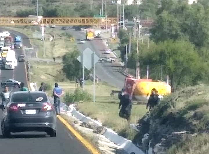 La tarde de este viernes volcó una pipa de Gas LP sobre la carretera Pachuca – Actopan a la altura del municipio de San Agustín Tlaxiaca, en San Juan Solís.